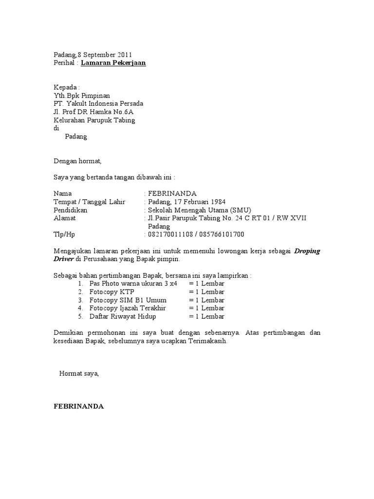 Contoh surat lamaran kerja driver bank mandiri. We did not find results for: Maybe you would like to learn more about one of these? Check spelling or type a new query.